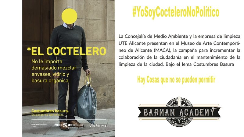 Compartim amb els socis i sòcies del Club la sol·licitud realitzada a l’Ajuntament d’Alacant mitjançant change.org per part de Barman Academy per a la retirada de la imatge de El Coctelero en la campanya de neteja d’aquesta ciutat, sota el lema Costums escombraries.